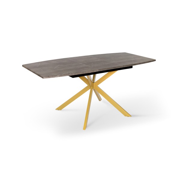 Розмір: 1400(+400)*850. Колір: Каркас і ніжки: Золотий/Чорний; Столешня: Юпітер (сірий). Матеріал: Каркас і ніжки: Метал; Столешня: МДФ у ПВХ плівці. Вкладка у стіл з механізмом "бабочка". Товщина столешні: 20 мм. Каркас і ніжки: порошкова покраска.
