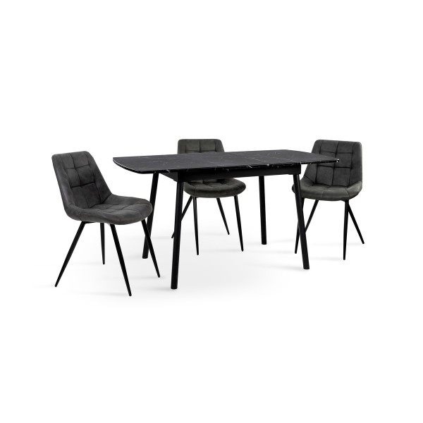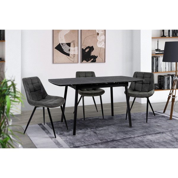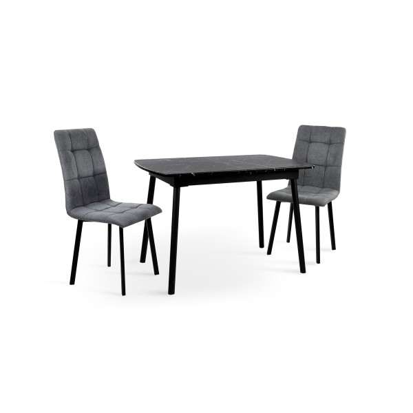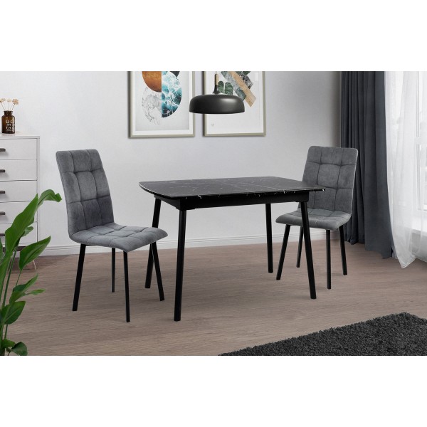 Стіл Соло 110(+35)*70 чорний метал/мрамор чорн
