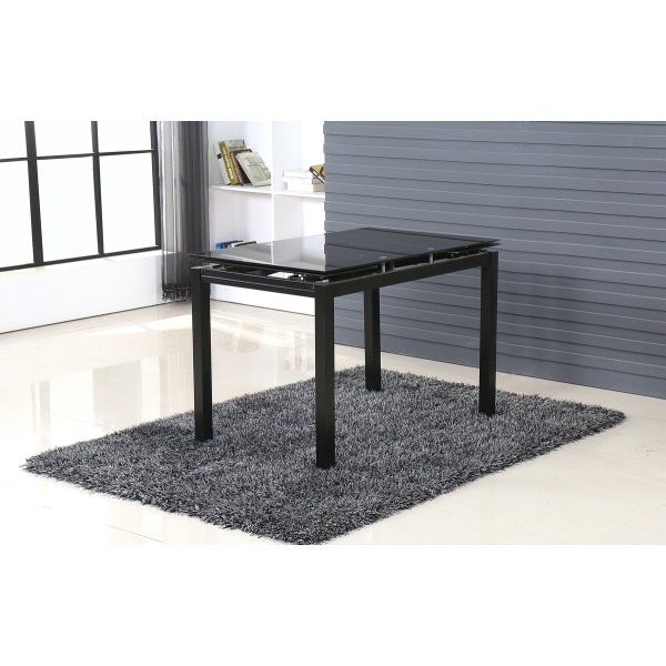 Скло чорного кольору, термозагартоване (триплекс) Товщина скла = 10 мм. Ніжки - метал, колір чорний. Розмір складений 110 см*70 см. Розмір розкладений 170*70см. Висота: 75 см