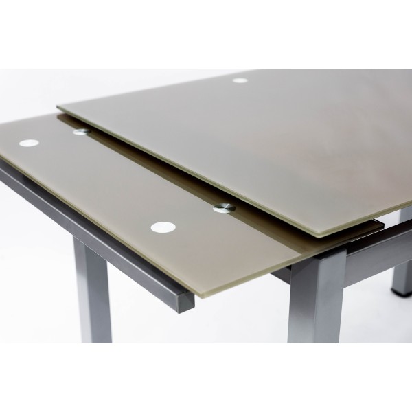 Скло термозагартоване (триплекс). Товщина скла = 10 мм. Ніжки - метал, колір сірийю. Розмір складений 80см*65см. Розмір розкладений 130*65 см. Висота: 75см