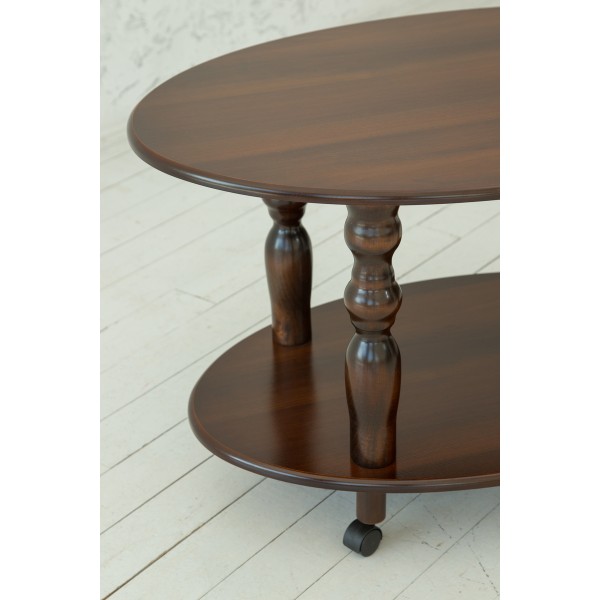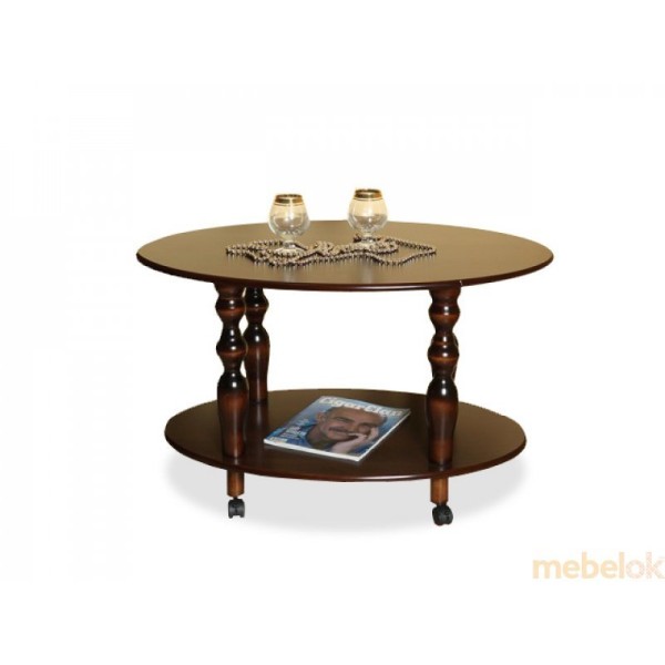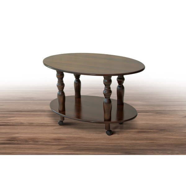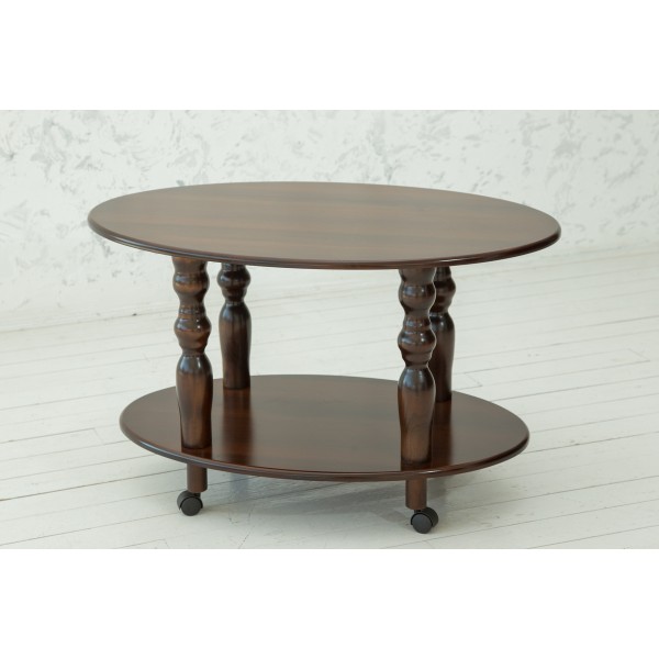 Розмір: В:Д:Ш - 600*920*570 Колір: горіх темн. Матеріал: Каркас: масив клена; Столешня: МДФ фарбований. Журнальний столик на коліщатках.