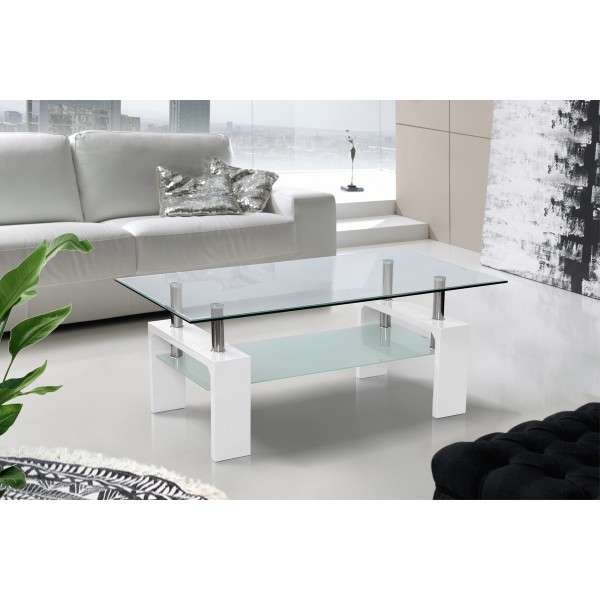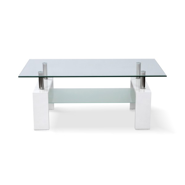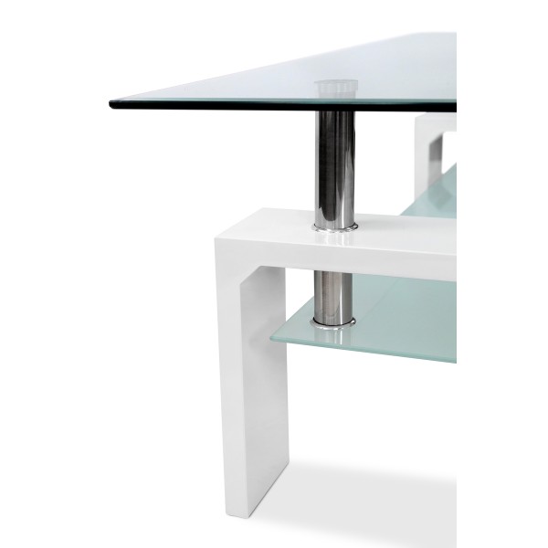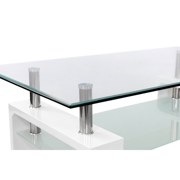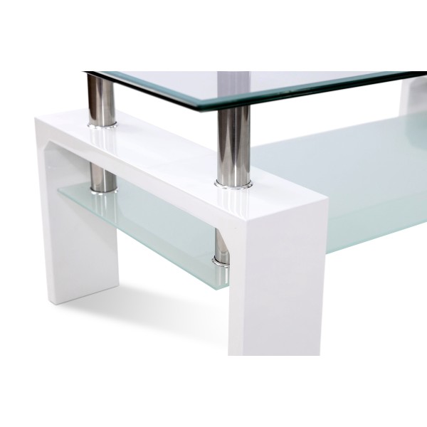 Основа столешні: Скло прозоре 8 мм та матове 8 мм, триплекс. Ніжки - МДФ білий та хром метал. Прозорий/ МДФ