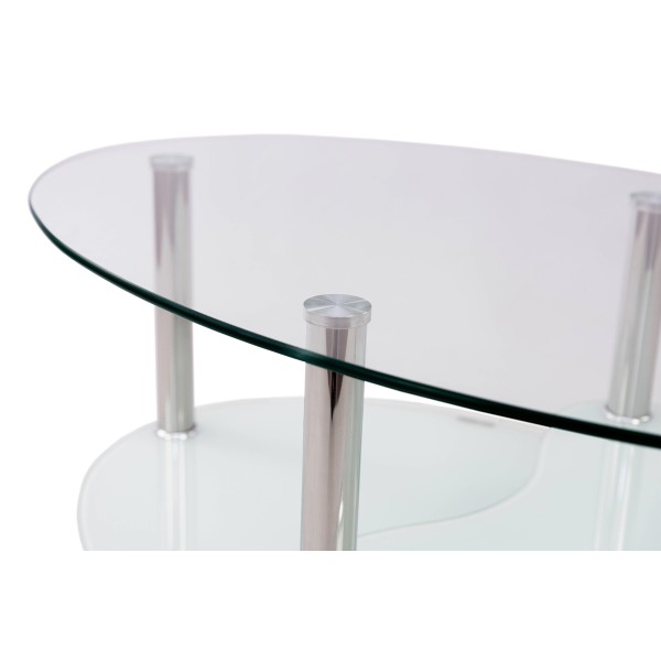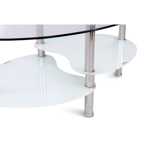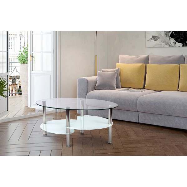Розмір: 900*550; Висота: 420. Колір: Ніжки: Хром; Столешня: Прозоре скло+біле скло. Матеріал: Ніжки: Метал; Столешня: Загартоване скло. Товщина прозорого скла: 8 мм; товщина чорного скла: 5 мм.