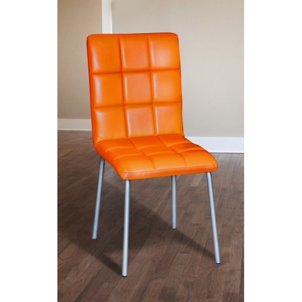 Цей стілець відображає нові тенденції в меблевій моді: правильні геометричні форми, цікаві кольорові рішення. Він обов'язково стане доповненням до Вашого інтер'єру, і не тільки додасть кухні благородного і акуратного вигляду, але і зможе заощадити величезну кількість місця. Крім того, що деревина з якої виготовлений цей стілець є абсолютно натуральним та екологічним матеріалом. Виріб порадує Вас своєю практичністю, міцністю та довговічністю. Це доступне, оптимальне, багатофункціональне рішення. Стілець ідеально підійде як для оформлення власного побуту, так і для найкращих сучасних дизайнерських рішень. В основі стільця лежить надійний і міцний дерев’яний каркас, який дозволяє витримувати великі навантаження. Оббиті тканиною, м’які сидіння та спинка створюють для власників стільця неперевершені відчуття комфорту і затишку. Габаритні розміри:¶Ш:520 Г:420 В :870 Каркас: метал Матеріал сидіння: Шкірзамінник Ніжки: порошкова покраска, стальна труба діаметром 20 мм. Можливі кольори: білий, молочний, коричневий, чорний, помаранчевий