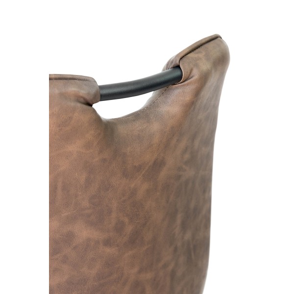 Основа сидіння: гнутоклеєна фанера, поролон, шкірзамінник з вінтажним ефектом. Ніжки та верхня ручка - метал, сидіння - шкірзамінник. Висота: 89 см. Ширина: 43 см. Глибина: 46 см. Ніжки чорні / шкірзамінник RU-05 античний шоколад