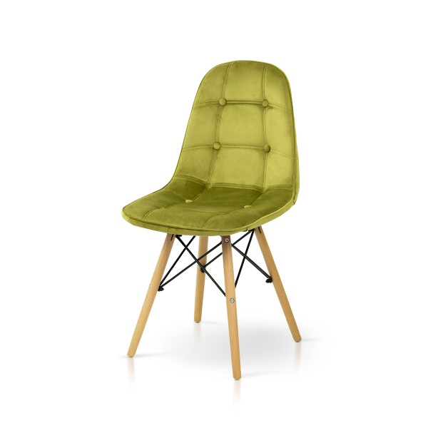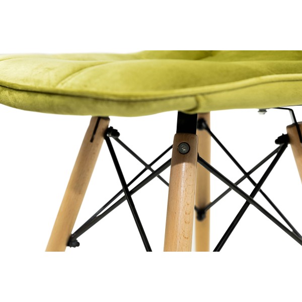 Основа сидіння: Фанера (гнутоклеєна). Оббивка - велюр. Ніжки - деревина, бук. Кріплення ніжок - метал. Висота: 84 см. Ширина: 46 см. Глибина: 50 см. Оливковий велюр HLR-53