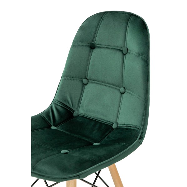 Основа сидіння: Фанера (гнутоклеєна). Оббивка - велюр. Ніжки - деревина, бук. Кріплення ніжок - метал. Висота: 84 см. Ширина: 46 см. Глибина: 50 см. Зелений велюр HLR-53