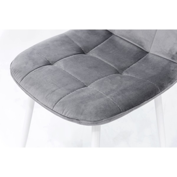 Основа сидіння: гнутоклеєна фанера, поролон, велюр. Ніжки - метал, сидіння - велюр. Висота: 86 см. Ширина: 43 см. Глибина: 49 см. Білий/ світло-сірий велюр UF910-03