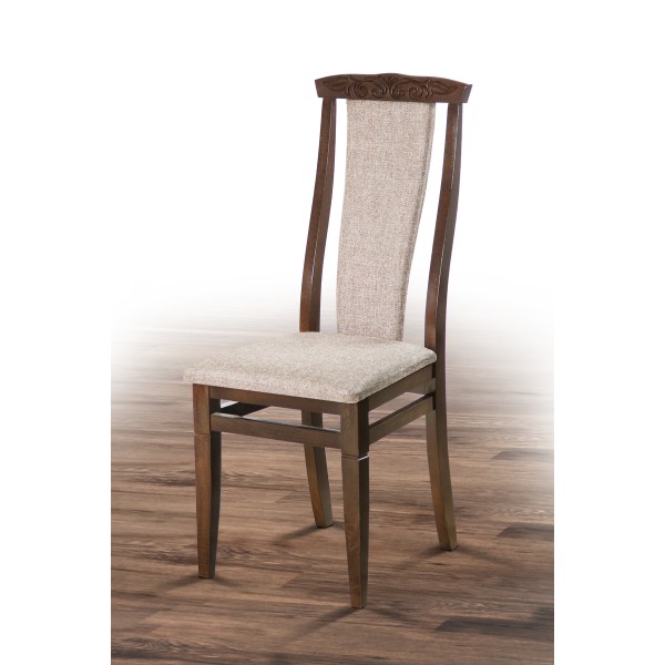 Розмір: В: 1030 мм; Г: 440 мм; Ш: 430 мм. Колір: Темний горіх Матеріал: Каркас: Масив бука; Тканина: Поло Браун Красивий, добротний та стильний стілець «Чумак-2» вирізняється гарною різьбленою спинкою, високою якістю виготовлення та комфорту. Найкраще співвідношення ціни та якості. Виготовлений з масиву бука. Габаритні розміри стільця «Чумак» 2 ідеально підходять під стандарти всієї колекції меблів «Карпати».