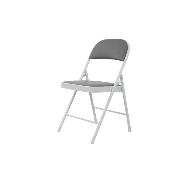 Розмір: В: 890 мм; Г: 560 мм; Ш: 480 мм. Колір: Каркас: Білий; Сидіння: Сірий. Матеріал: Каркас: Метал; Сидіння: Фанера гнутоклеєна+шкірзамінник. Продаж кратно 4 шт (коробка).
