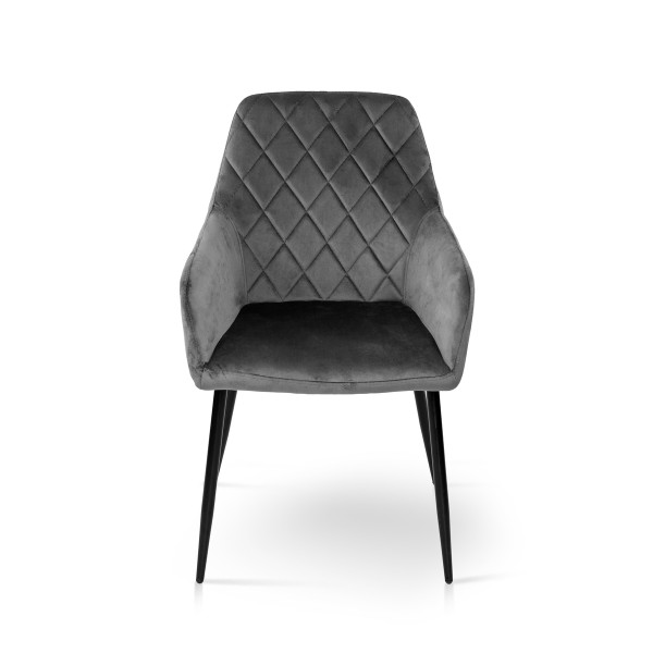 Розмір: В: 89 см; Г: 57 см; Ш: 58 см; Колір: Каркас: чорний; Сидіння: велюр сірий; Матеріал: Каркас: ніжки - метал; Сидіння: фанера гнутоклеєна + поролон у велюрі.