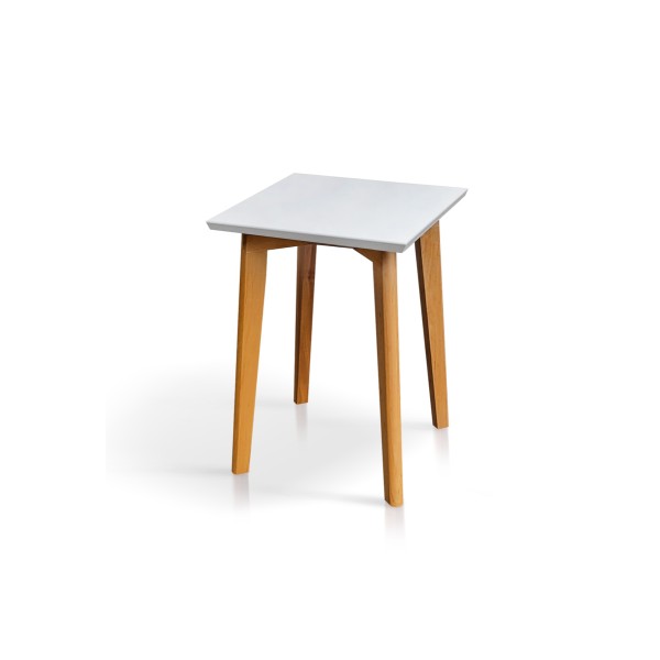 Розмір: 330*330; H=450. Колір: ніжки: натуральний; сидіння: білий Матеріал: ніжки: масив вільхи; сидіння: МДФ фарбований.