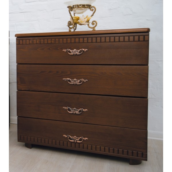 Розмір: 820/810/450 Колір: Світлий горіх, темний горіх, венге. Матеріал: Буковий щит, МДФ шпонований Цей комод це чудове доповнення інтер'єру кімнати або передпокою. Цей практичний предмет меблів точно вигідно заощадить вільне місце приміщення, додасть розкоші та респектабельності. Завдяки сучасному, стильному та вишуканому дизайну, легко впишеться у будь-який інтер'єр, гармонійно поєднуватиметься з меблями різного стилю. Довговічна конструкція радуватиме своєю функціональністю.