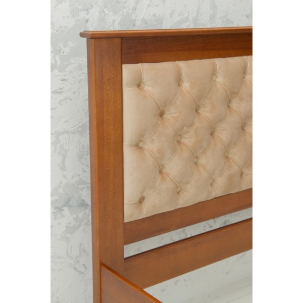 Розмір: Доступні розміри під матрац: 1200*2000; 1400*2000; 1600*2000; 1800*2000. Колір: Горіх, Горіх темний, Білий.Матеріал: буковий щит.Матеріал оббивки в складській програмі: Тканина велюр Beatrice 03( Apparel).Висота узголів'я: 1100 мм; Висота узніжжя: 410 мм.Відстань між ламелями: 55 мм. Товщина поролона в узголів'ї: 50 мм.Габаритні розміри:до ширини +110 мм; до довжини +110 мм.Глибина посадки матраца - 70 мм.