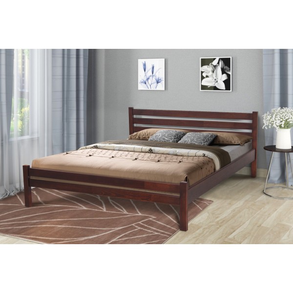 Розмір: Доступні розміри під матрац:800*2000, 900*2000, 1400*2000,1600*2000; Висота: узголів'я - 800 мм, узніжжя - 400 мм; Габарити: до ширини + 40 мм, до довжини +40 мм Колір: Темний горіх Матеріал: Масив, сосна