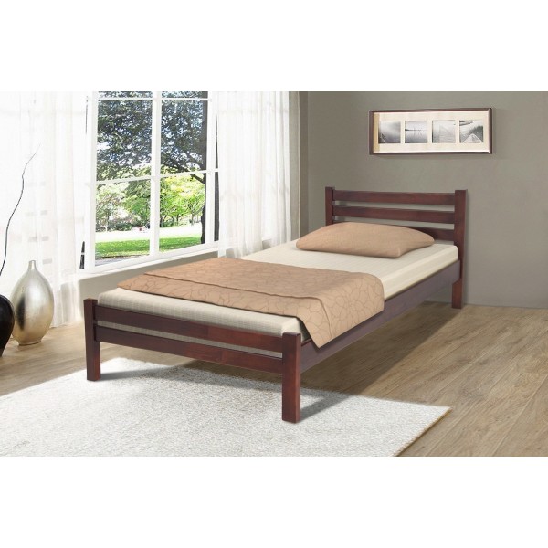 Розмір: Доступні розміри під матрац:800*2000, 900*2000, 1400*2000,1600*2000; Висота: узголів'я - 800 мм, узніжжя - 400 мм; Габарити: до ширини + 40 мм, до довжини +40 мм Колір: Темний горіх Матеріал: Масив, сосна