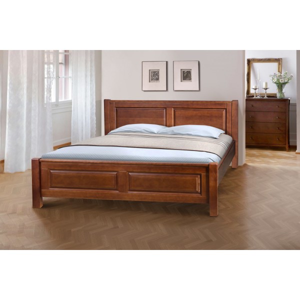 Розмір: 1200*2000,1400*2000,1600*2000; габаритні розміри: до ширини спального місця + 16 см, до довжини + 16 см, висота узголівья 85 см, висота узніжжя 43 см.Колір: Білий, Слонова кістка, Горіх, Темний горіх, Яблуня, Каштан.Матеріал: Масив вільхи Узголів'я і узніжжя даної моделі прикрашено об'ємною ввігнутою рамою, що придає ліжку оригінальний вид.