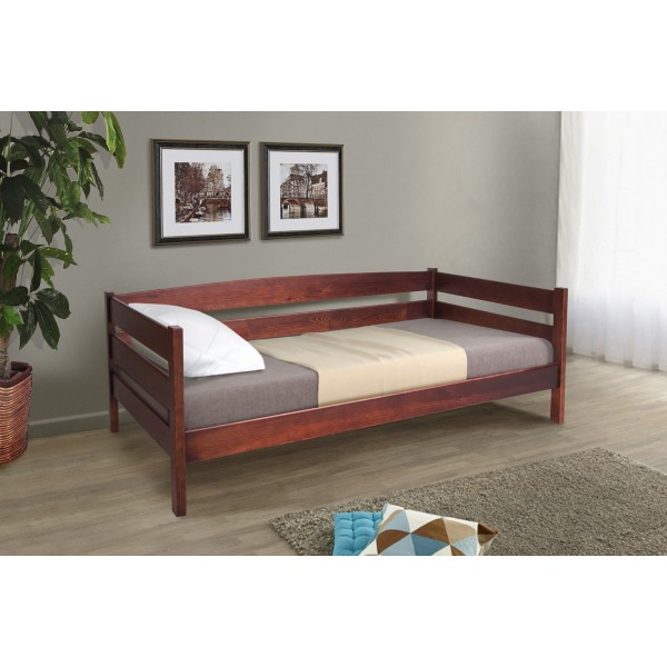 Розмір: Під матрац: 900*2000 мм; Висота: 740 мм; Габарити: ширина - 940 мм, довжина - 2040 мм. Колір: Темний горіх Матеріал: Масив, сосна