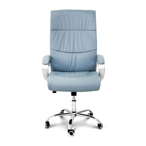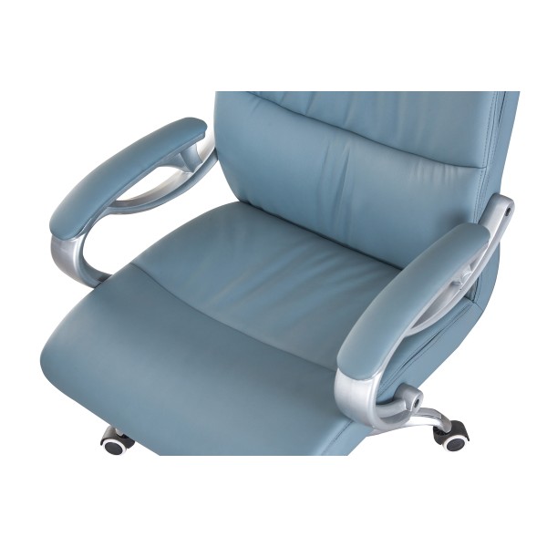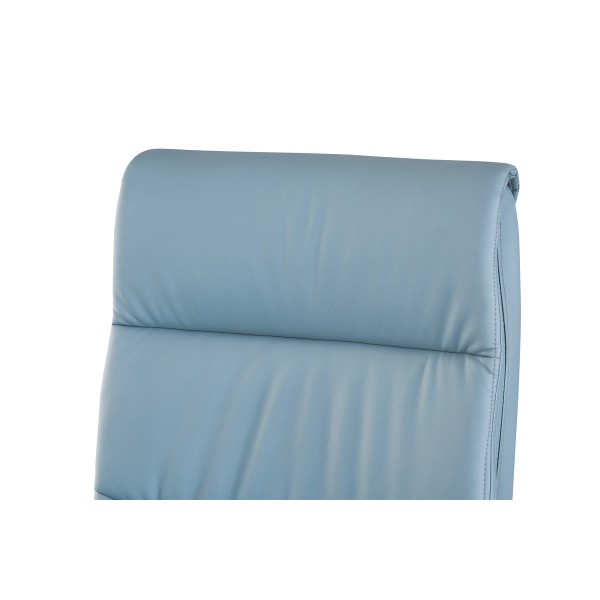 Розмір: Висота стільця: 98 см; Сидіння: Ш - 50 см; Спинка: В - 61 см; Висота підйому механізму: 10 см; Колір: Каркас: Хром; Сидіння: Сіро-блакитний, Оббивка: шкірзам. Матеріал: Каркас: Метал; Сидіння: Фанера гнутоклеєна. Ніжки - метал, хром. Підйомний механізм - газліфт