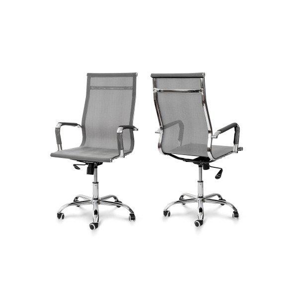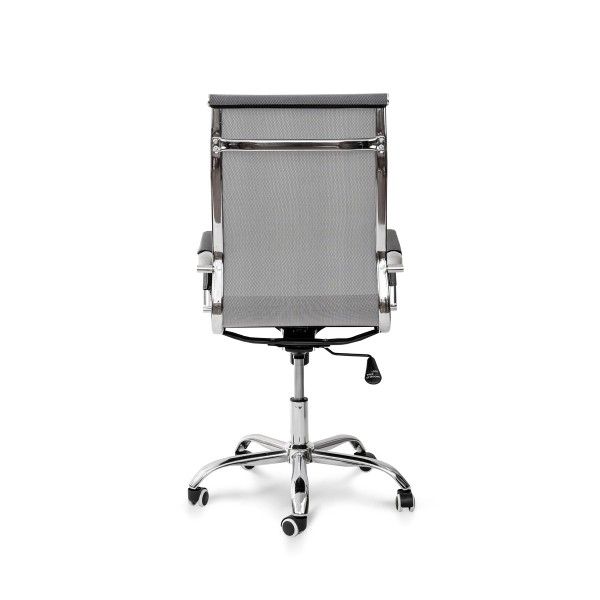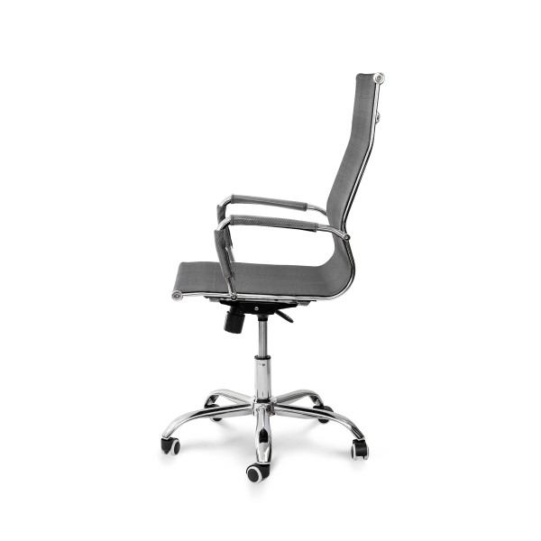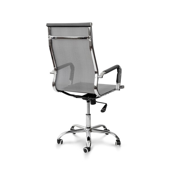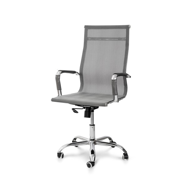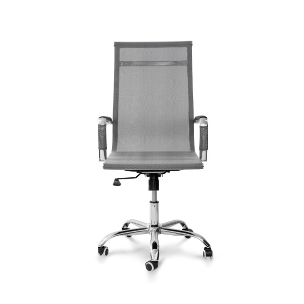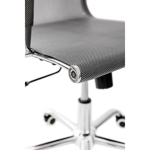 Розмір: Висота стільця: 107 см; Сидіння: Ш*Г - 47*50 см; Висота спинки від сидіння: 65 см; Висота до підлокітників: 68 см; Висота підйому механізму: 10 см; Колір: Каркас: Хром; Сидіння: Сірий, Оббивка: PVC сітка Матеріал: Каркас: Метал+PVC сітка;