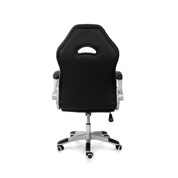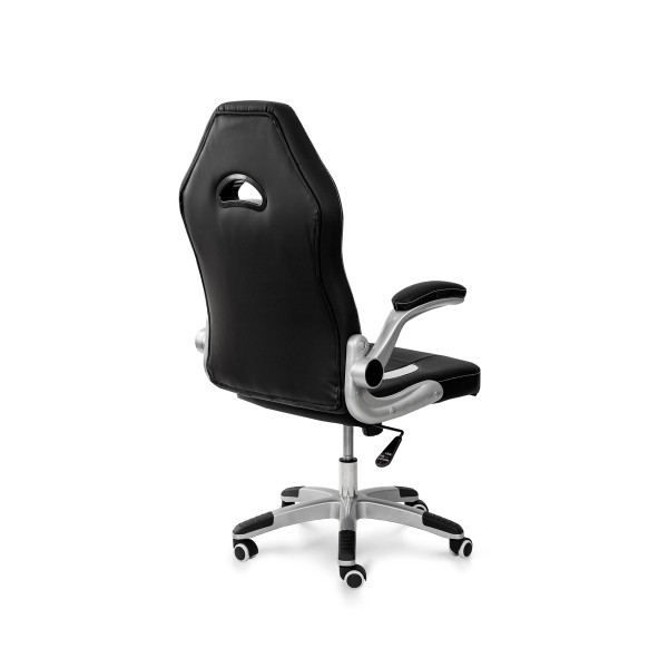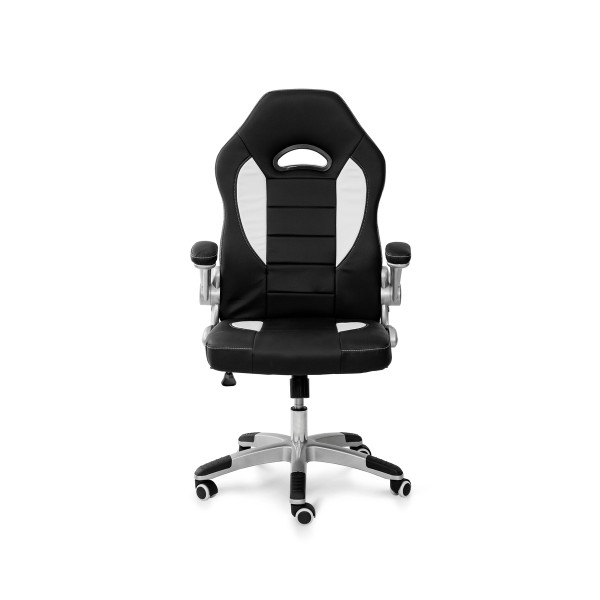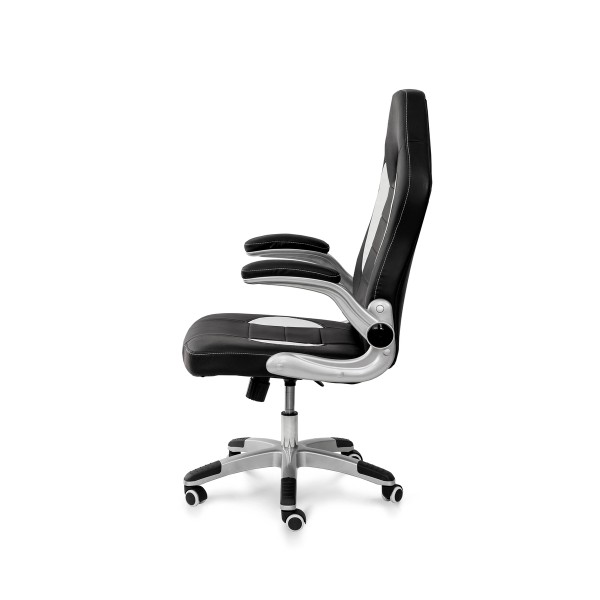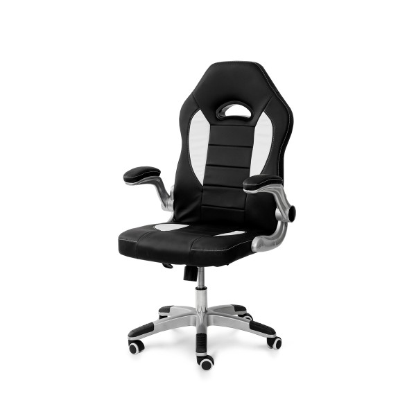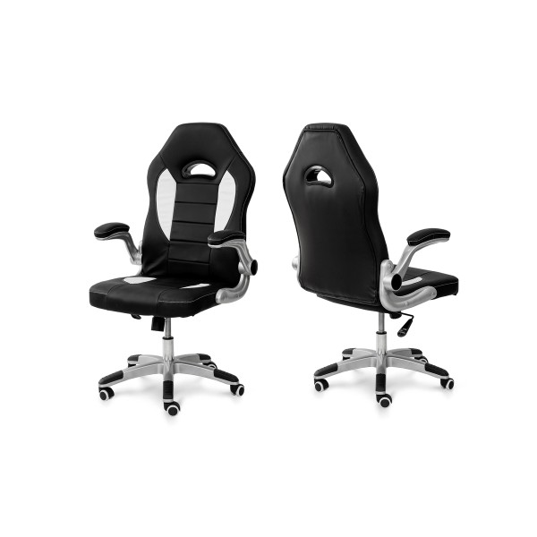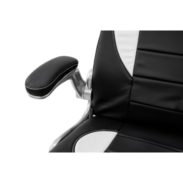 Розмір: Висота стільця (нижнє положення): 113 см; Висота сидіння в нижньому положенні: 41 см; Сидіння: Ш - 50 см, Г: 49 см; Спинка: В - 71 см; Висота підлокітників: 23 см; Висота підйому механізму: 10 см; Ширина виробу: 63 см; Глибина виробу: 52 см; Колір: Каркас: Хром; Сидіння: Чорний/Білий, Оббивка: шкірзам Матеріал: Каркас: Метал; Сидіння: Фанера гнутоклеєна Ніжки - метал, хром Підйомний механізм - газліфт