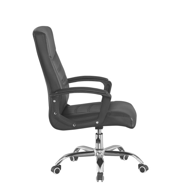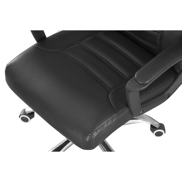 Розмір: Висота стільця: 97 см; Сидіння: Ш - 50 см; Спинка: В - 61 см; Висота підйому механізму: 10 см; Колір: Каркас: Хром; Сидіння: Чорний, Оббивка: шкірзам. Матеріал: Каркас: Метал; Сидіння: Фанера гнутоклеєна. Ніжки - метал, хром. Підйомний механізм - газліфт