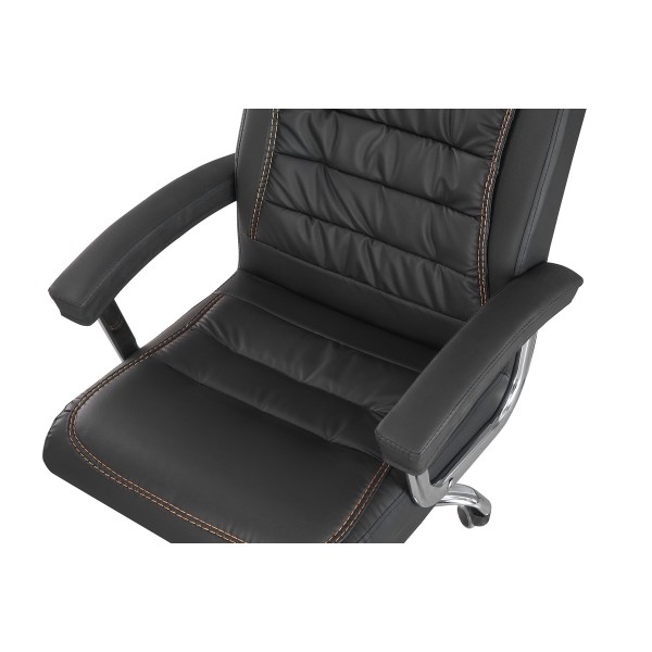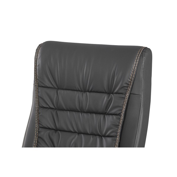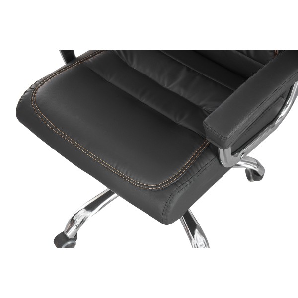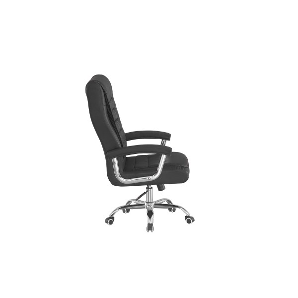 Розмір: Висота стільця: 110 см; Сидіння: Ш - 53 см; Спинка: В - 69 см; Висота підйому механізму: 10 см; Колір: Каркас: Хром; Сидіння: Чорний, Оббивка: шкірзам. Матеріал: Каркас: Метал; Сидіння: Фанера гнутоклеєна. Ніжки - метал, хром. Підйомний механізм - газліфт