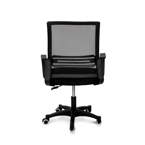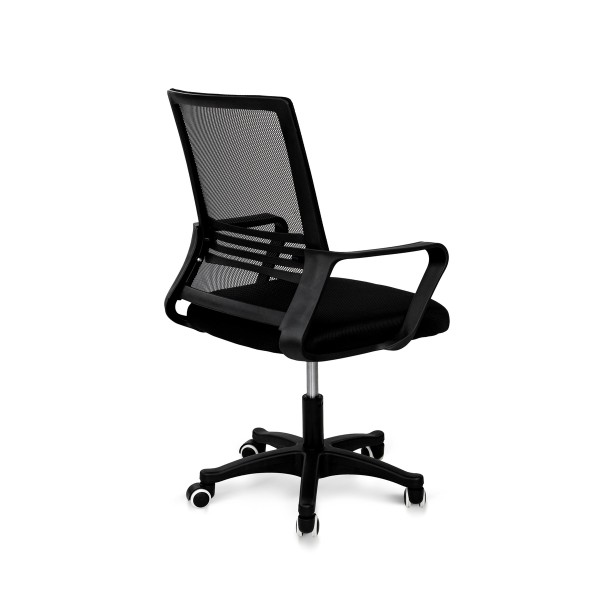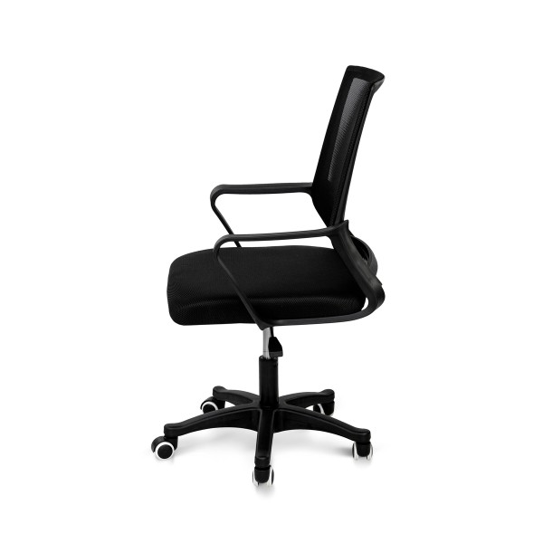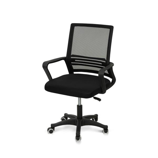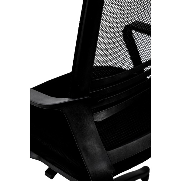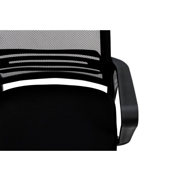 Розмір: Висота стільця: 880 мм; Сидіння: Ш*Г - 480*480 мм; Висота спинки від сидіння: 650 мм; Висота підлокітників: 210 мм; Висота підйому механізму: 100 мм; Колір: Каркас: Хром; Сидіння: Колір: Чорний; Основа сидіння: фанера (гнутоклеєна), спинка - сітка; Матеріал: Каркас: Метал, Ніжки: метал, хром; Підйомний механізм: газліфт.