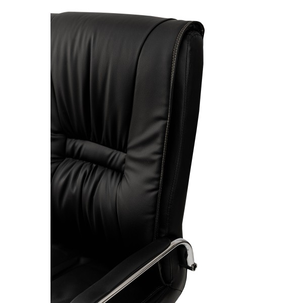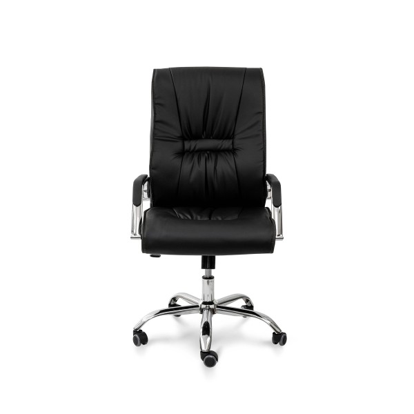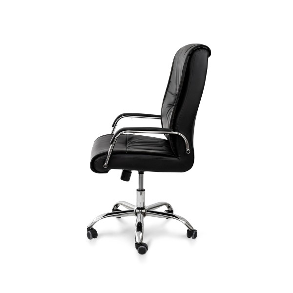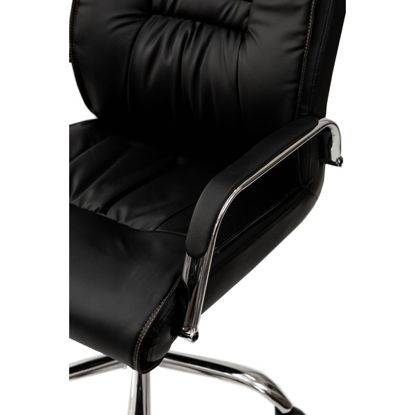 Розмір: Висота стільця: 110 см; Сидіння: Ш - 53 см; Спинка: В - 69 см; Висота підйому механізму: 10 см; Колір: Каркас: Хром; Сидіння: Коричневий, Оббивка: шкірзам. Матеріал: Каркас: Метал; Сидіння: Фанера гнутоклеєна. Ніжки - метал, хром. Підйомний механізм - газліфт