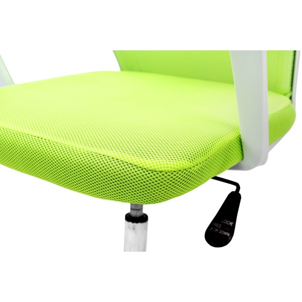Розмір: Висота стільця: 1100 - 1200 мм; Сидіння: Ш*Г - 480*470 мм; Висота підлокітників: 210 мм; Висота підйому механізму: 100 мм; Колір:; Сидіння: Колір: Olive; Основа сидіння: фанера (гнутоклеєна), спинка - сітка; Матеріал: Каркас: Пластик; Підйомний механізм: газліфт.