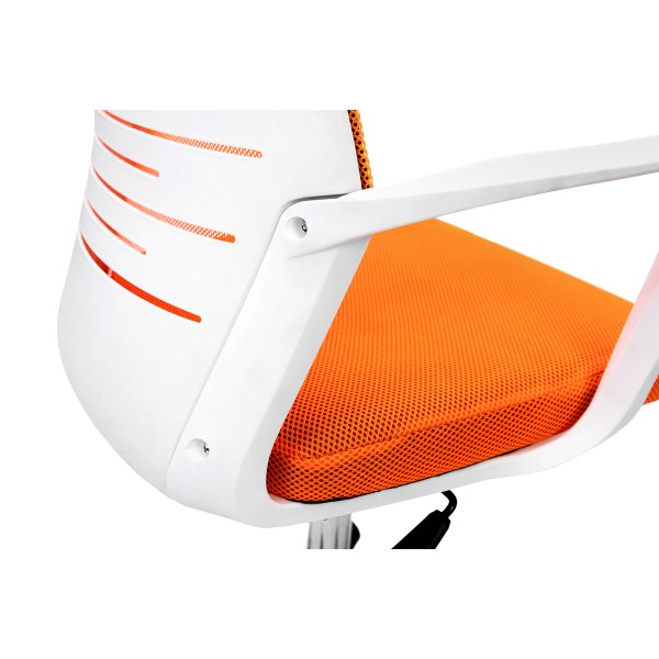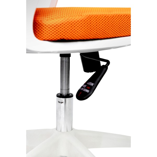 Розмір: Висота стільця: 1100 - 1200 мм; Сидіння: Ш*Г - 480*470 мм; Висота підлокітників: 210 мм; Висота підйому механізму: 100 мм; Колір:; Сидіння: Колір: Orange; Основа сидіння: фанера (гнутоклеєна), спинка - сітка; Матеріал: Каркас: Пластик; Підйомний механізм: газліфт.
