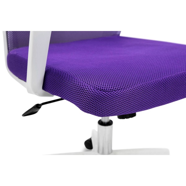 Розмір: Висота стільця: 1100 - 1200 мм; Сидіння: Ш*Г - 480*470 мм; Висота підлокітників: 210 мм; Висота підйому механізму: 100 мм; Колір:; Сидіння: Колір: Very Peri; Основа сидіння: фанера (гнутоклеєна), спинка - сітка; Матеріал: Каркас: Пластик; Підйомний механізм: газліфт.