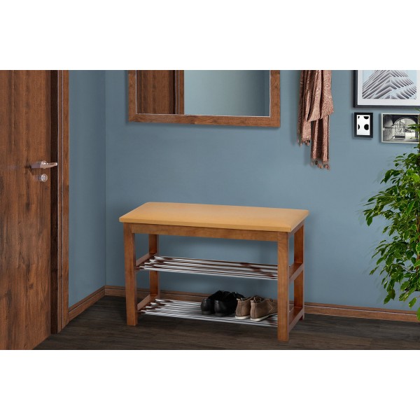 Лавка для взуття №1, св.горіх, кож.зам, бежевий