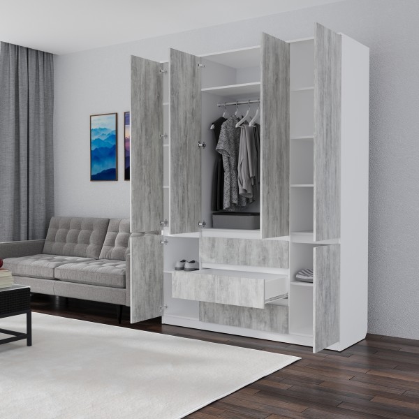 Розмір: Висота: 1860; Ширина: 1400; Глибина: 380. Колір: Урбан Лайт / Білий. Матеріал: ДСП Kronospan