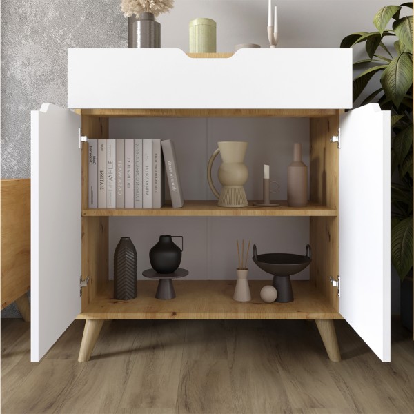 Зробіть вашу вітальню більш функціональною та елегантною з комодом М-ЗОН Борн 750. Поєднання дуба Артизан та антрацитового кольору створює сучасний та стильний вигляд, який легко впишеться в будь-який інтер'єр. Чорні ніжки додають нотку шику та підкреслюють витонченість дизайну.