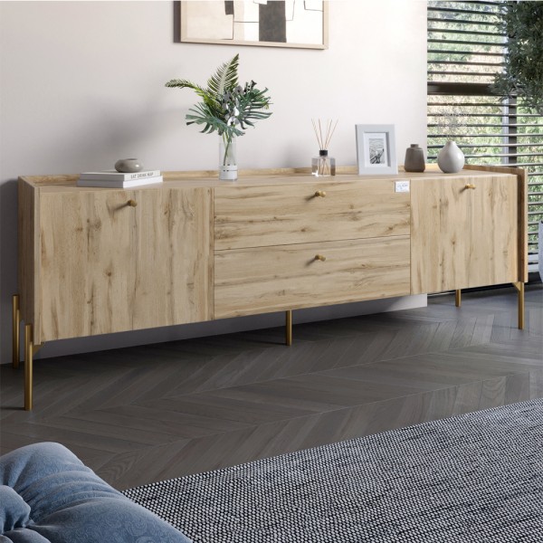 Золоті ніжки додають тумбі елегантності та сучасного вигляду, що робить її не лише функціональним, але й стильним елементом вашого інтер'єру. Ви точно оціните, як ця тумба здатна перетворити вашу вітальню, надаючи їй вишуканості та шарму.