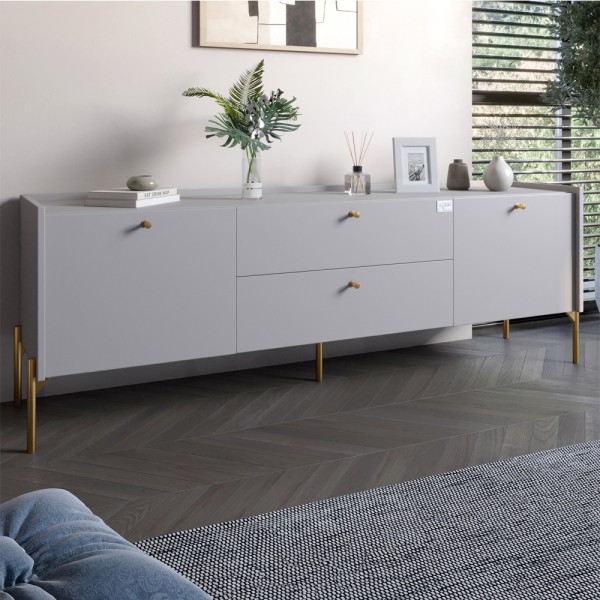 Виготовлена з високоякісних матеріалів, ця тумба не лише вражає своїм дизайном, але й гарантує довговічність. Лаконічний кашеміровий колір додає витонченості, а золоті ніжки підкреслюють розкішний стиль. Ви зможете насолоджуватися естетикою та комфортом, який вона приносить у ваш простір.