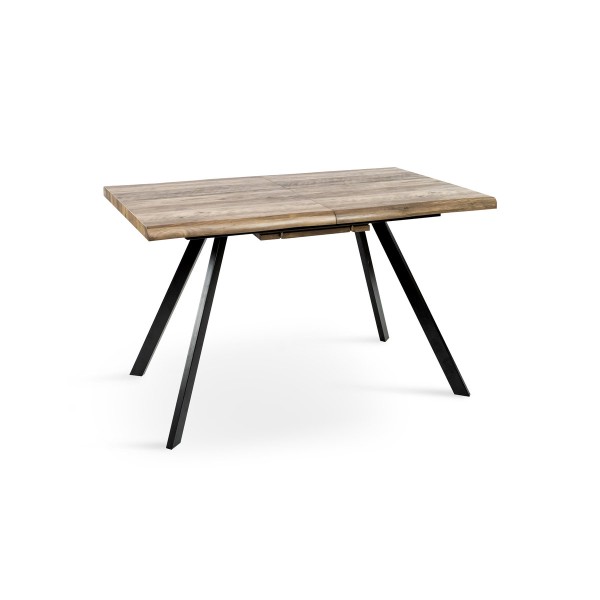 Розмір: 120*(+40)*80 см, H - 76 см; Розкладний: Форма прямокутника з ефектом криволінійної дошки; Колір: під натуральну деревину, ніжки - чорний. Матеріал: МДФ 38 мм товщиною, тонкий шар матеріалу з ефектом деревини (каширований цільнорулоний папір) Ніжки: метал порошкова покраска, колір чорний, товщина 40*80мм