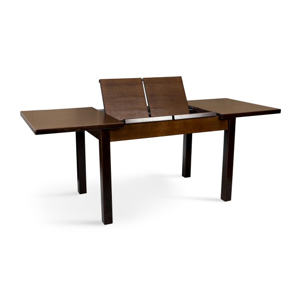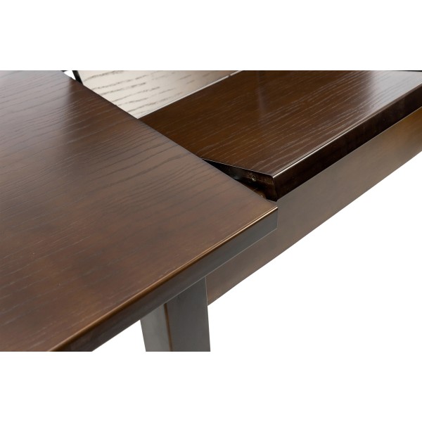 Розмір: 1200(+400 +400)*800; Колір: Каркас: темн горіх; Столешня: темн.горіх. Матеріал: Каркас: Масив Бука; Столешня: МДФ шпонований ясенем. Товщина столешні: 19 мм, з фальш панеллю по краям 38 мм. Вкладка: 2 вкладки бабочки.