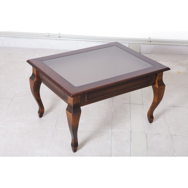 Розмір: 760*600*470 Колір: Темний горіх Матеріал: Каркас: масив клена; столешня: МДФ зі штучним шпоном+скло