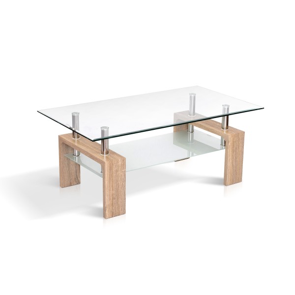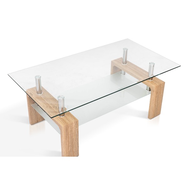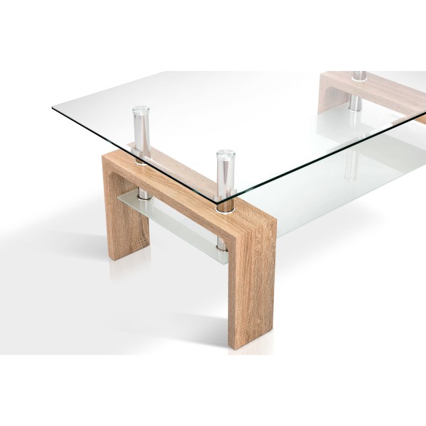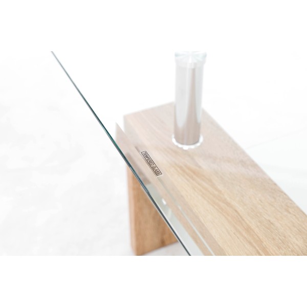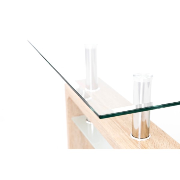 Основа столешні: Скло прозоре 8 мм та матове 8 мм, триплекс. Ніжки - МДФ термодрук (з ефекторм дерева) та хром метал. Прозорий/ МДФ з ефектом "дерево"