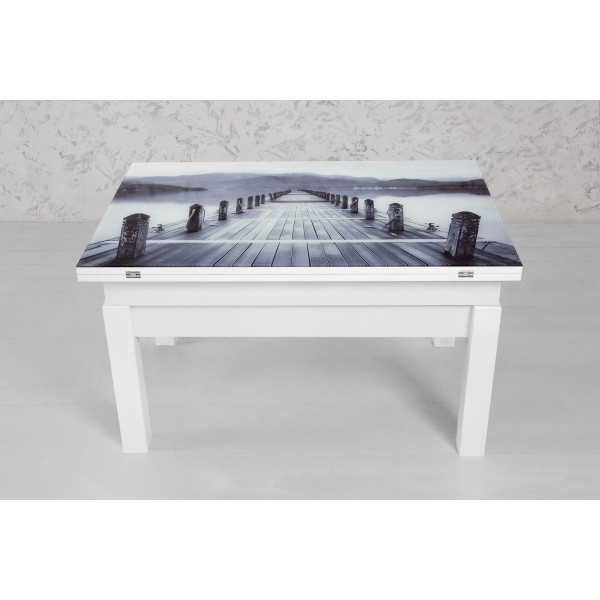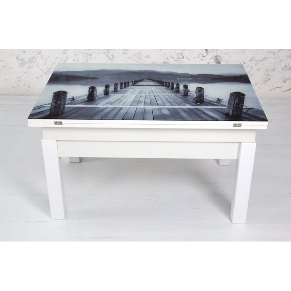 Стіл-трансформер ФЛАЙ, білий+скло (міст) fp-1118