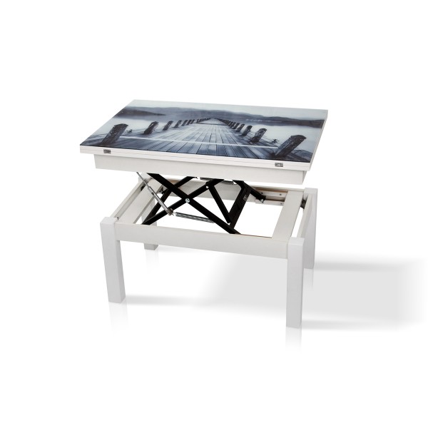 Розмір: Довжина 902 (1204), Ширина 602 (902), Висота 520 (750) Колір: Білий + скло Міст ( fp-1118) Матеріал: Ніжки: масив дерева; Столешня: ДСП Стіл-трансформер Флай від компанії МІКС Меблі - це чудове рішення як для невеликих приміщень так і для вітальних кімнат та дач. Займає в складеному виді дуже мало місця, але коли його розкласти, то він стає повноцінним обіднім столом. Його габарити: у складеному виді (ДШВ), мм 902 * 602 * 520, в розкладеному - 1204 * 902 * 750. Стільниця столу виготовлена з сучасного високоякісного ДСП, яке відповідає всім існуючим стандартам в Україні.Механізм трансформації виготовлений із квадрат-труби товщиною 16*16мм., пофарбованої порошковою фарбою, що дозволяє витримувати будь-які навантаження (в розумних межах). Механізм оснащений газовими амортизаторами та пружинами. Це сприяє м'якому підйому стільниці перед розкладкою. Опори столу виготовлені з екологічно чистих порід деревини.