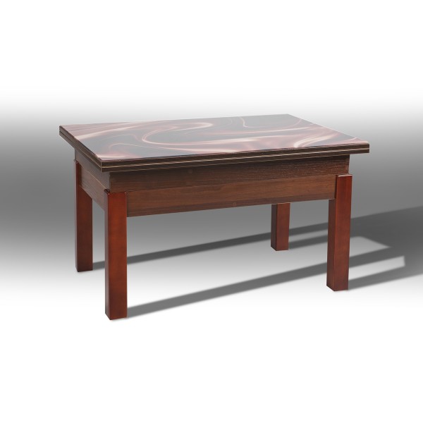Стіл-трансформер ФЛАЙ, тем.горіх + скло абстракція