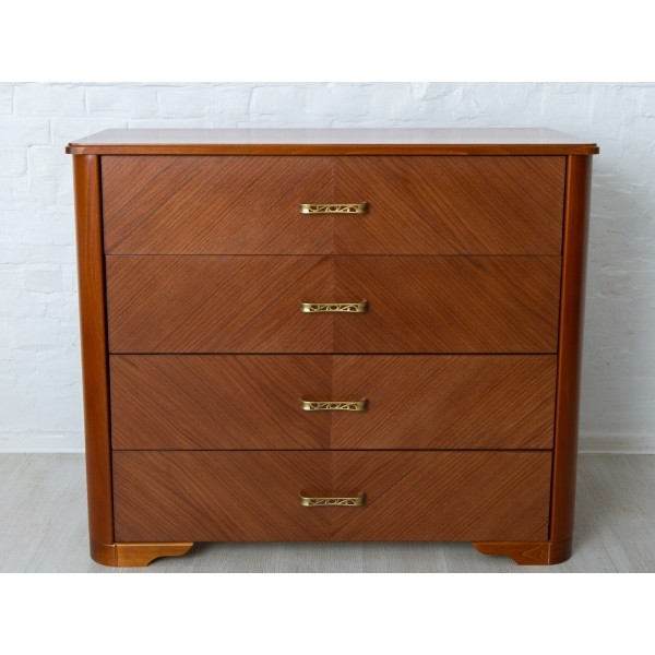 Розмір: 1150/925/515 Колір: Темний горіх, світлий горіх ,білий. Матеріал: Буковий щит, МДФ шпонований Цей комод це чудове доповнення інтер'єру кімнати або передпокою. Цей практичний предмет меблів точно вигідно заощадить вільне місце приміщення, додасть розкоші та респектабельності.