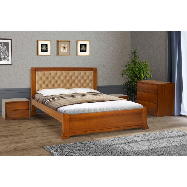 Розмір: Доступні розміри під матрац: 1200*2000; 1400*2000; 1600*2000; 1800*2000. Колір: Горіх, Горіх темний, Білий.Матеріал: буковий щит.Матеріал оббивки в складській програмі: Тканина велюр Beatrice 03( Apparel).Висота узголів'я: 1100 мм; Висота узніжжя: 410 мм.Відстань між ламелями: 55 мм. Товщина поролона в узголів'ї: 50 мм.Габаритні розміри:до ширини +110 мм; до довжини +110 мм.Глибина посадки матраца - 70 мм.