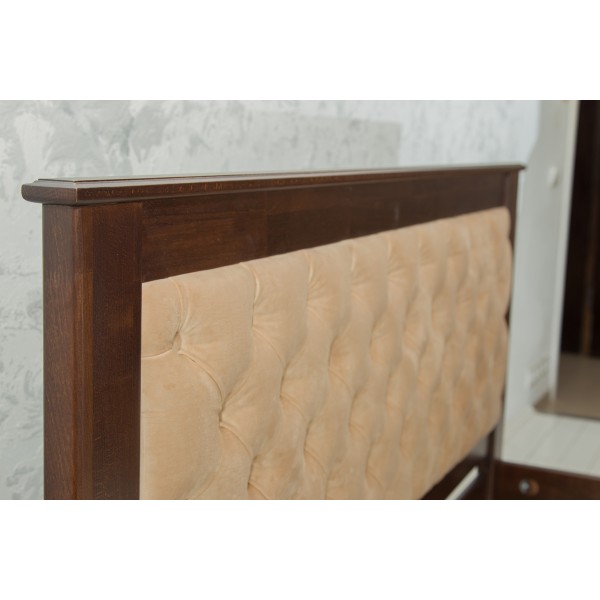 Розмір: Доступні розміри під матрац: 1200*2000; 1400*2000; 1600*2000; 1800*2000.Колір: Горіх, Горіх темний, Білий.Матеріал: буковий щит.Матеріал оббивки в складській програмі: Тканина велюр Beatrice 03( Apparel).Висота узголів'я: 1100 мм; Висота узніжжя: 410 мм.Відстань між ламелями: 55 мм. Товщина поролона в узголів'ї: 50 мм.Габаритні розміри:до ширини +110 мм; до довжини +110 мм.Глибина посадки матраца - 70 мм.