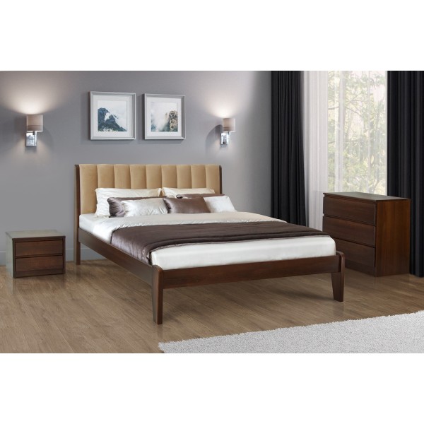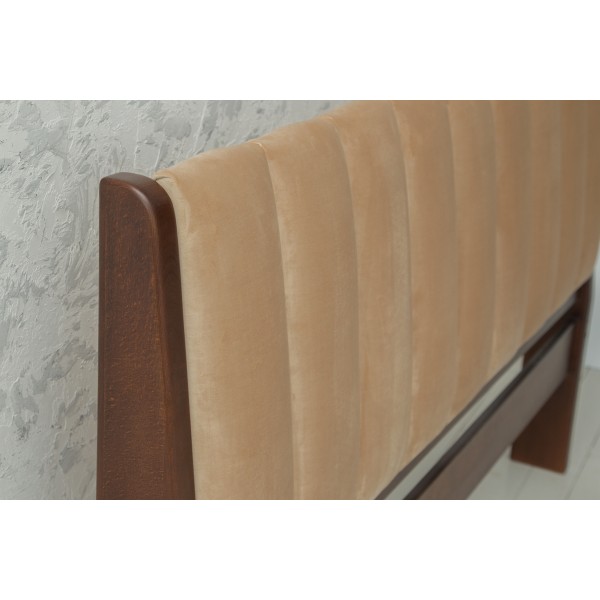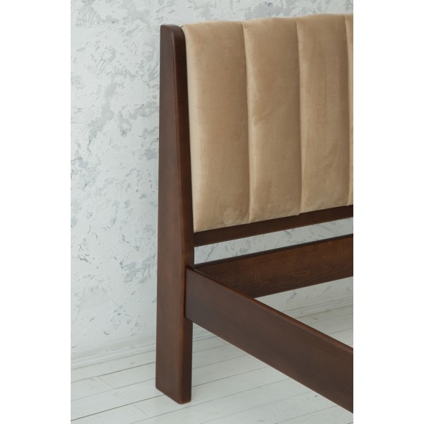 Розмір: Доступні розміри під матрац: 1200*2000; 1400*2000; 1600*2000; 1800*2000.Колір: Горіх, Горіх темний, Білий.Матеріал: буковий щит. Матеріал оббивки в складській програмі: Тканина велюр Beatrice 03( Apparel). Висота узголів'я: 1100 мм; Висота узніжжя: 410 мм. Відстань між ламелями: 55 мм. Товщина поролона в узголів'ї: 50 мм.Габаритні розміри:до ширини +110 мм; до довжини +110 мм.Глибина посадки матраца - 70 мм.