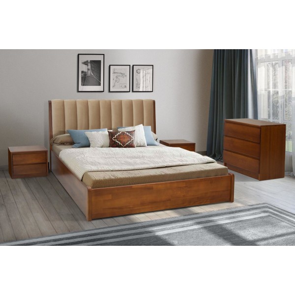 Розмір: Доступні розміри під матрац: 1200*2000; 1400*2000; 1600*2000; 1800*2000.Колір: Горіх, Горіх темний, Білий.атеріал: буковий щит.Матеріал оббивки в складській програмі:1. Тканина велюр Beatrice 03 (Apparel). 2. Тканина велюр Beatrice 07 (Apparel). Висота узголів'я: 1000 мм; Висота узніжжя: 330 мм. Відстань між ламелями: 55 мм. Товщина поролону в узголів'ї: 50 мм.Габаритні розміри:до ширини +70 мм; до довжини +160 мм.Глибина посадки матраца - 70 мм.