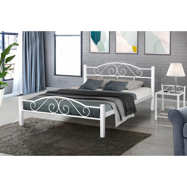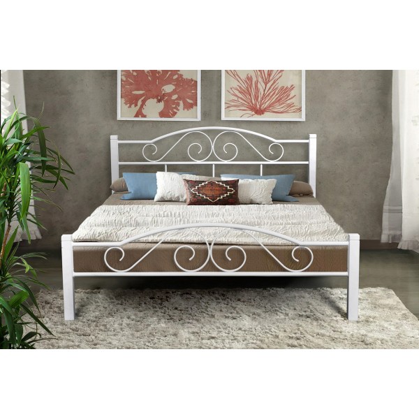 Ліжко "Регіна Вуд" Розмір: Доступні розміри під матрац:1600*2000; Висота узголів'я: 850 мм; Колір: Білий Матеріал: каркас - метал, ніжки - дерево